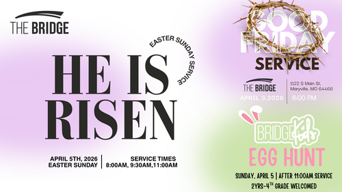 We would also love for you to join us on Easter Sunday, April 5th. Services will be held at 8:00am, 9:30am, and 11:00am as we celebrate the resurrection of Jesus—the greatest day of all.