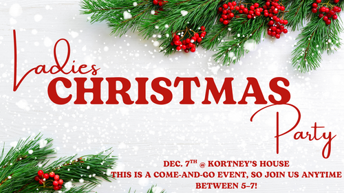 🎄 Ladies Christmas Party! Join us for a cozy come-and-go evening filled with holiday cheer. Bring a sweet or savory treat to share!